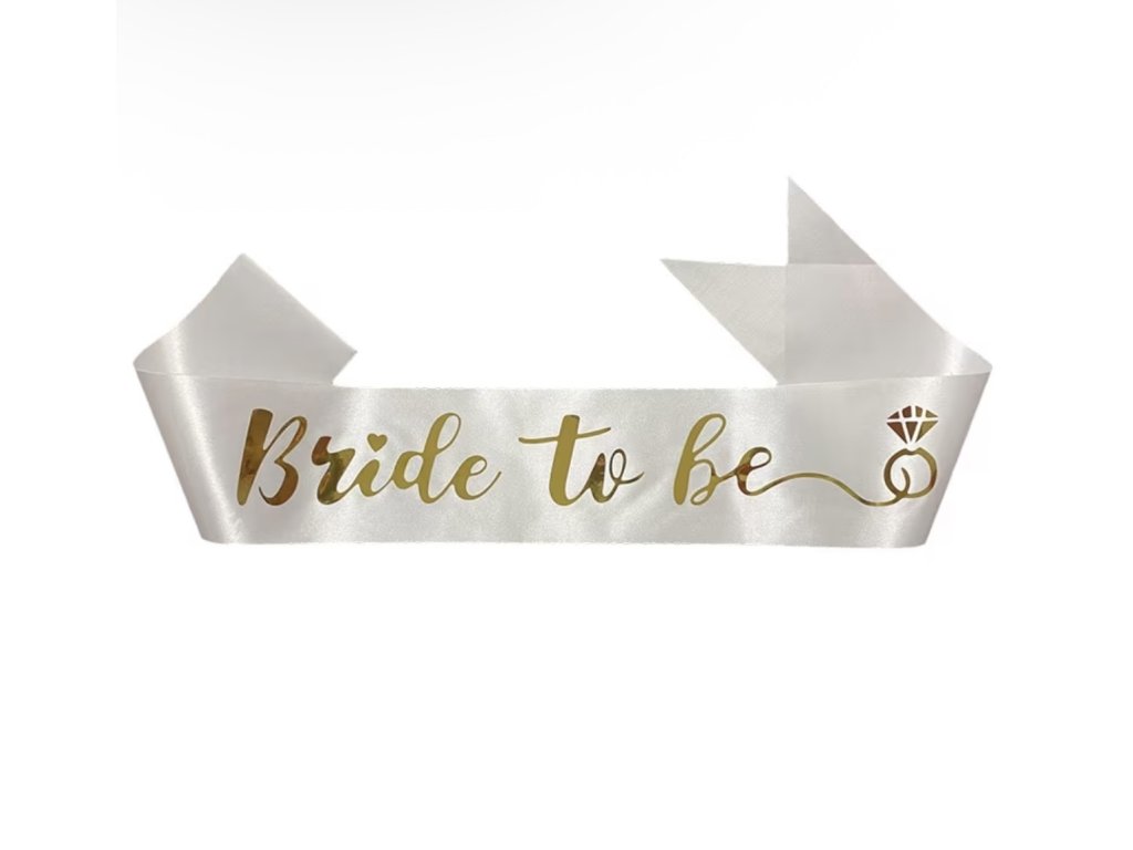 Elegantní saténová šerpa s nápisem Bride to Be je nezbytným doplňkem každé budoucí nevěsty. Jemný lesklý materiál v kombinaci se zlatým potiskem působí slavnostně a nepřehlédnutelně.