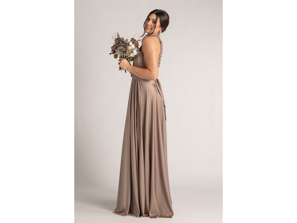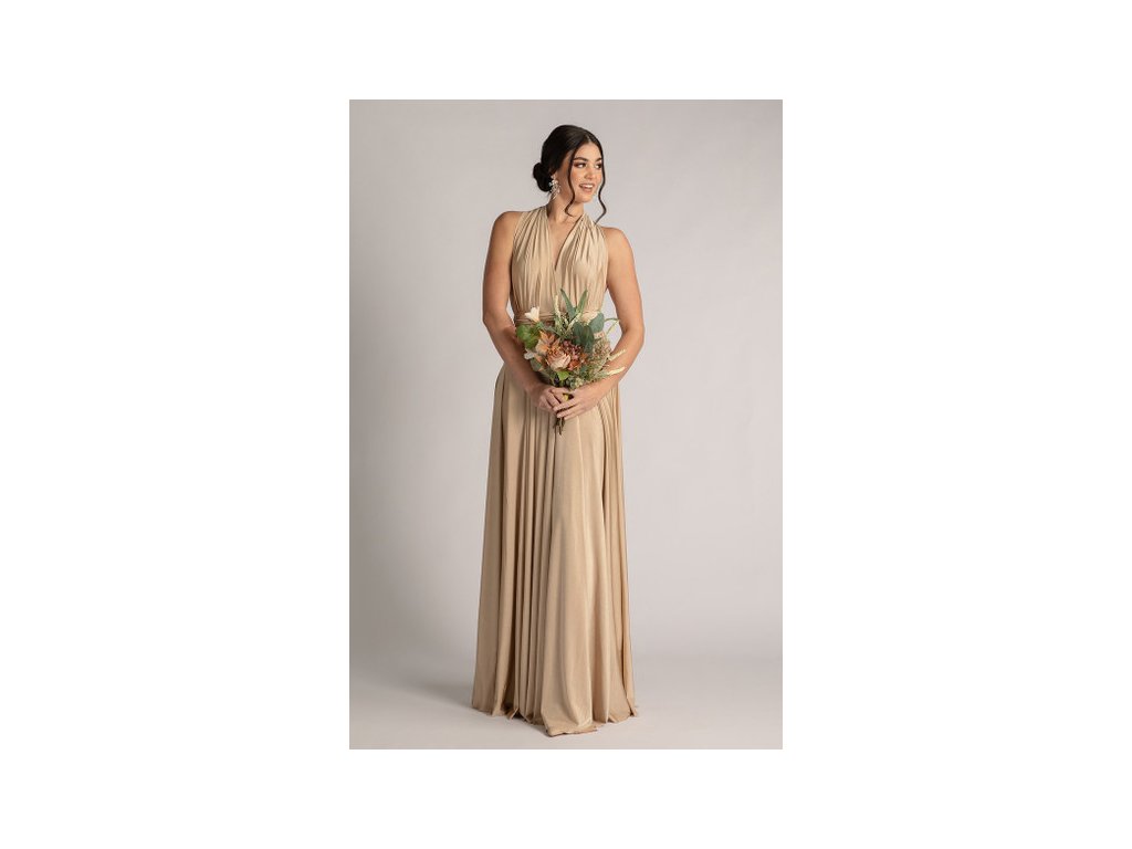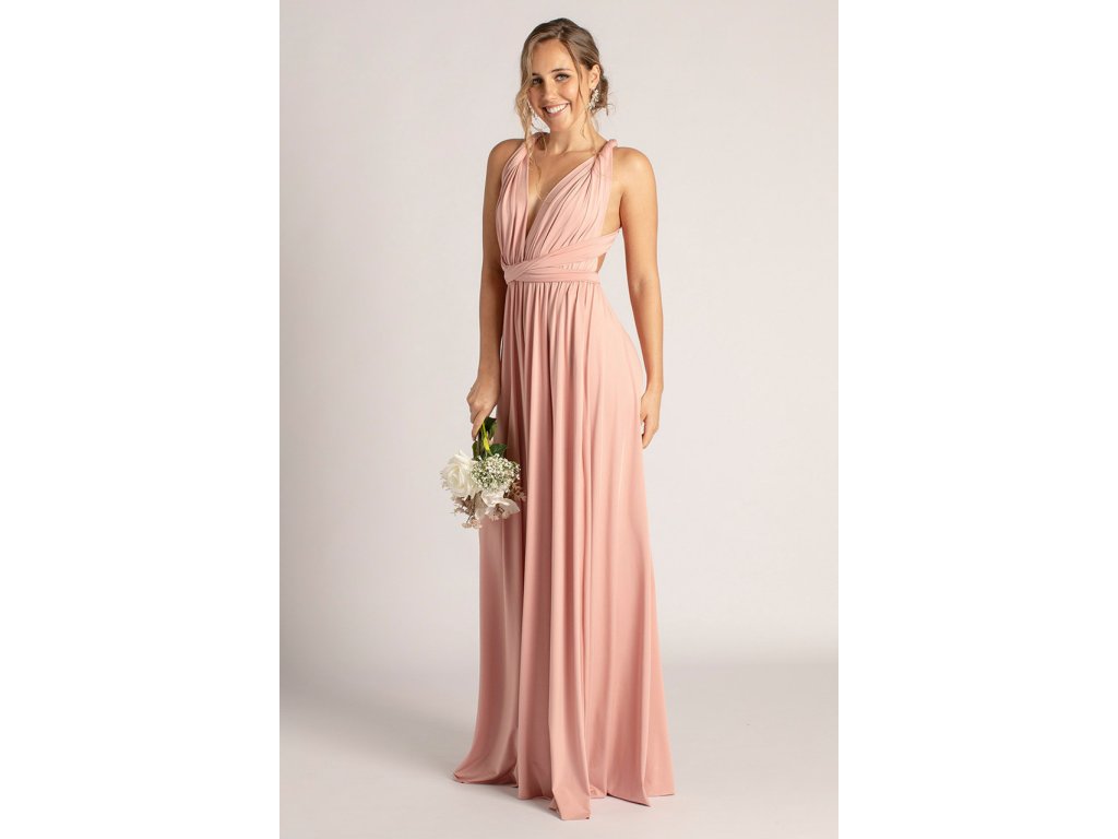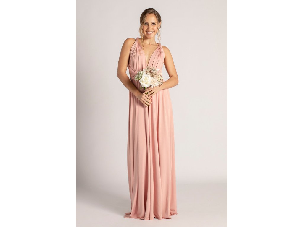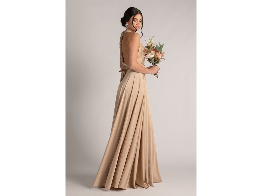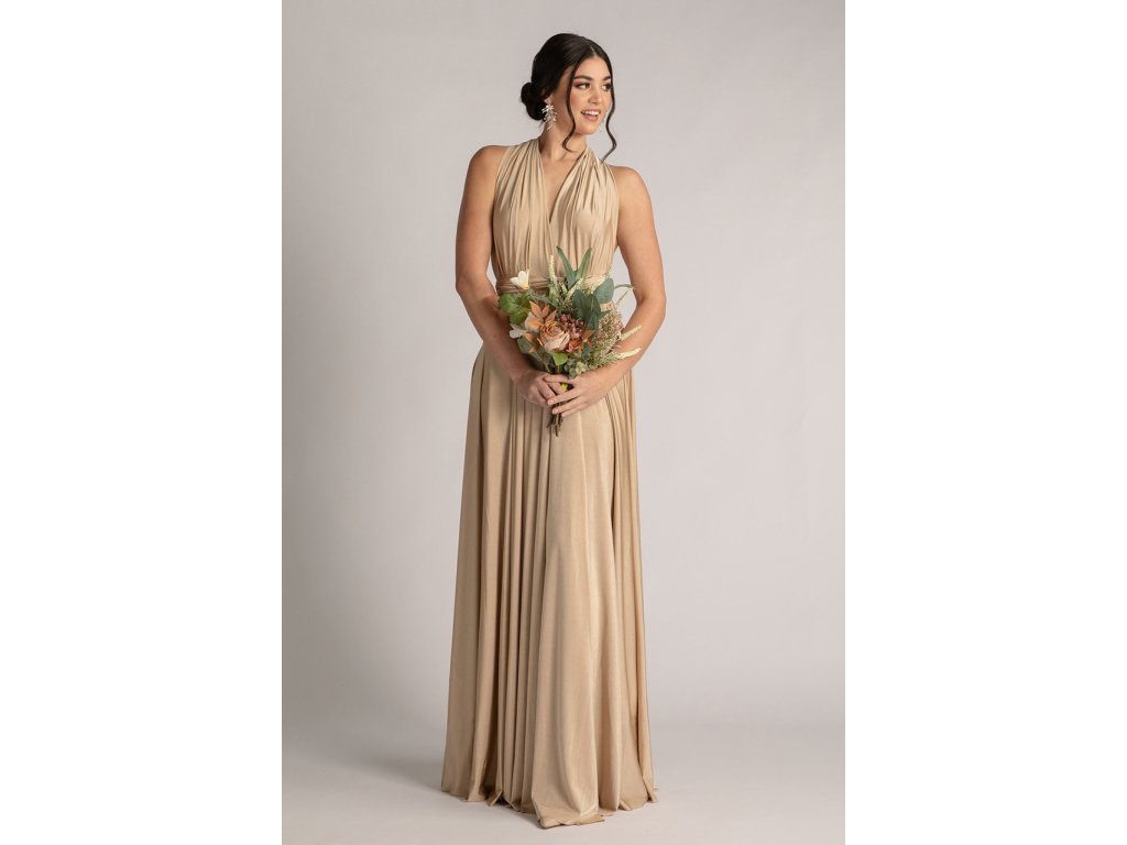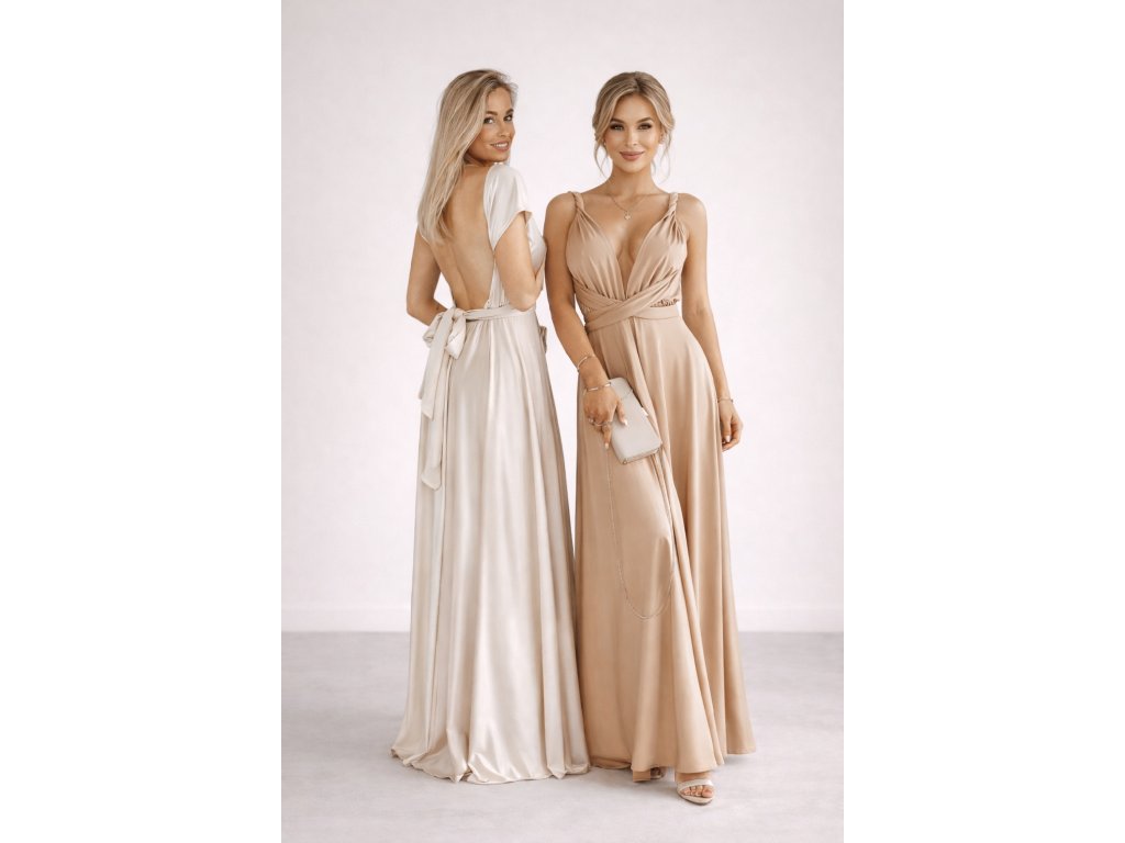 Variabilní šaty pro družičky jsou ideální volbou pro svatby, kde chcete sladit družičky do jednotného stylu a zároveň dopřát každé z nich možnost zvolit si střih, ve kterém se bude cítit nejlépe. Díky dlouhým zavazovacím pásům lze šaty uvázat na mnoho způsobů — například přes ramena, za krk, s rukávy nebo s odhalenými zády.