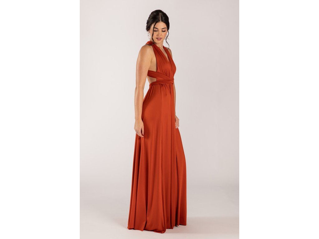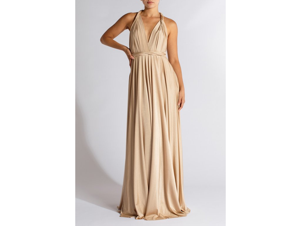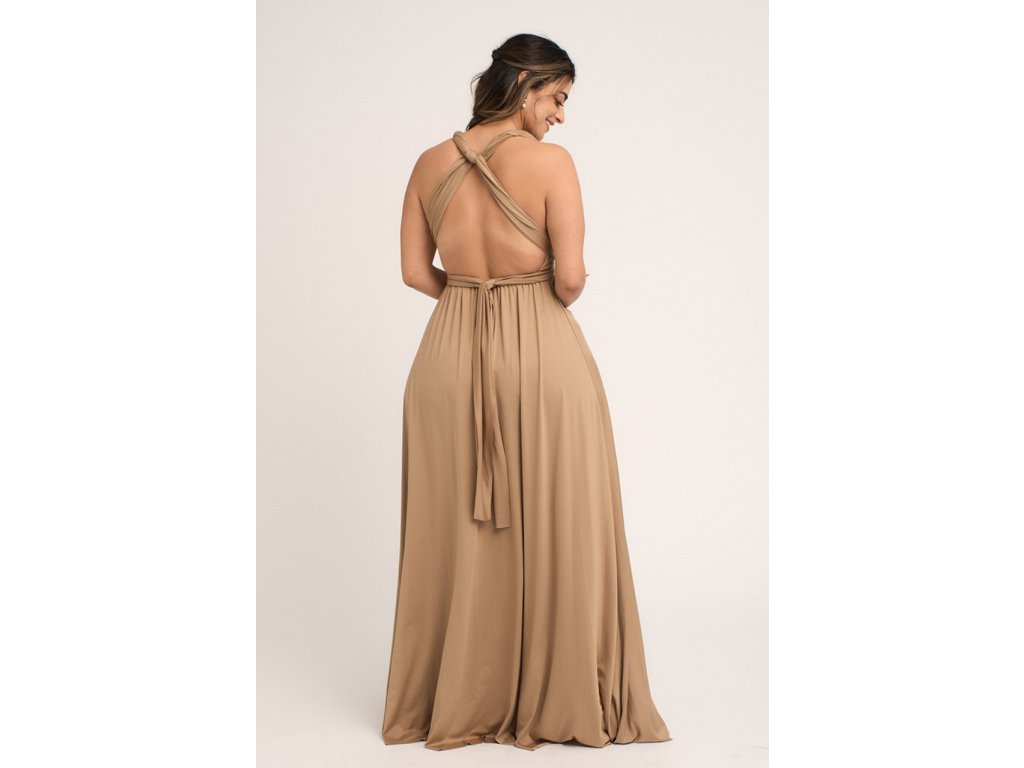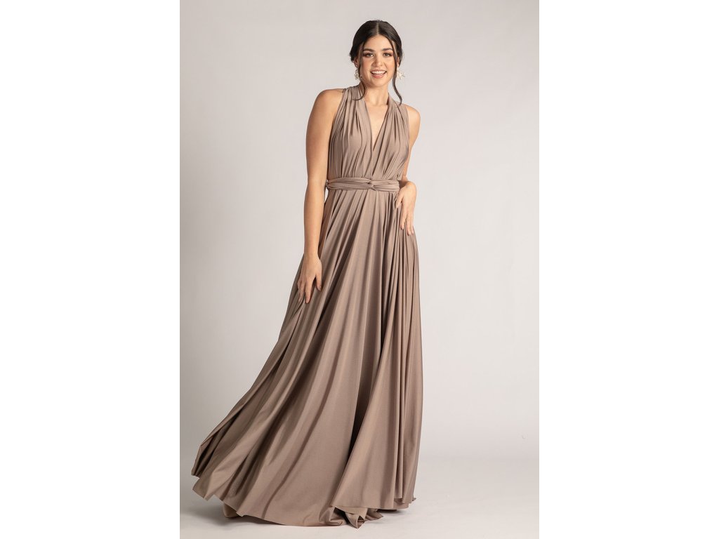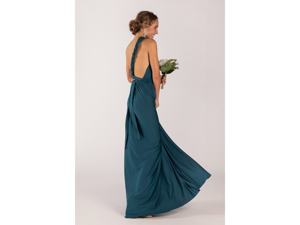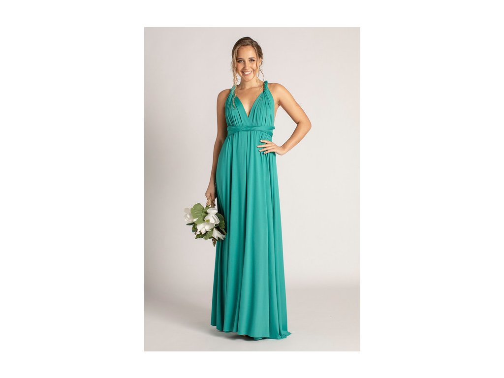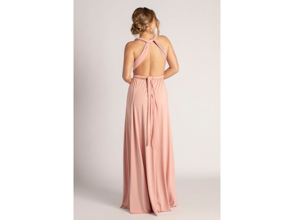 Variabilní šaty pro družičky jsou ideální volbou pro svatby, kde chcete sladit družičky do jednotného stylu a zároveň dopřát každé z nich možnost zvolit si střih, ve kterém se bude cítit nejlépe. Díky dlouhým zavazovacím pásům lze šaty uvázat na mnoho způsobů — například přes ramena, za krk, s rukávy nebo s odhalenými zády.